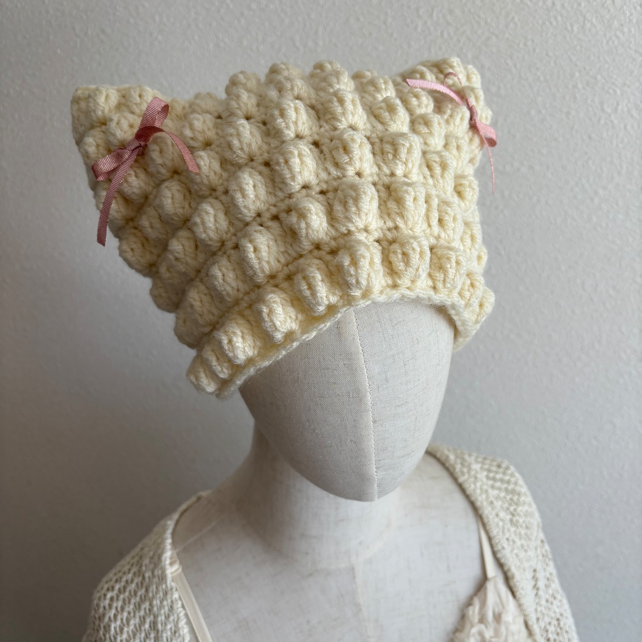ぽこぽこ模様の猫耳ニット帽