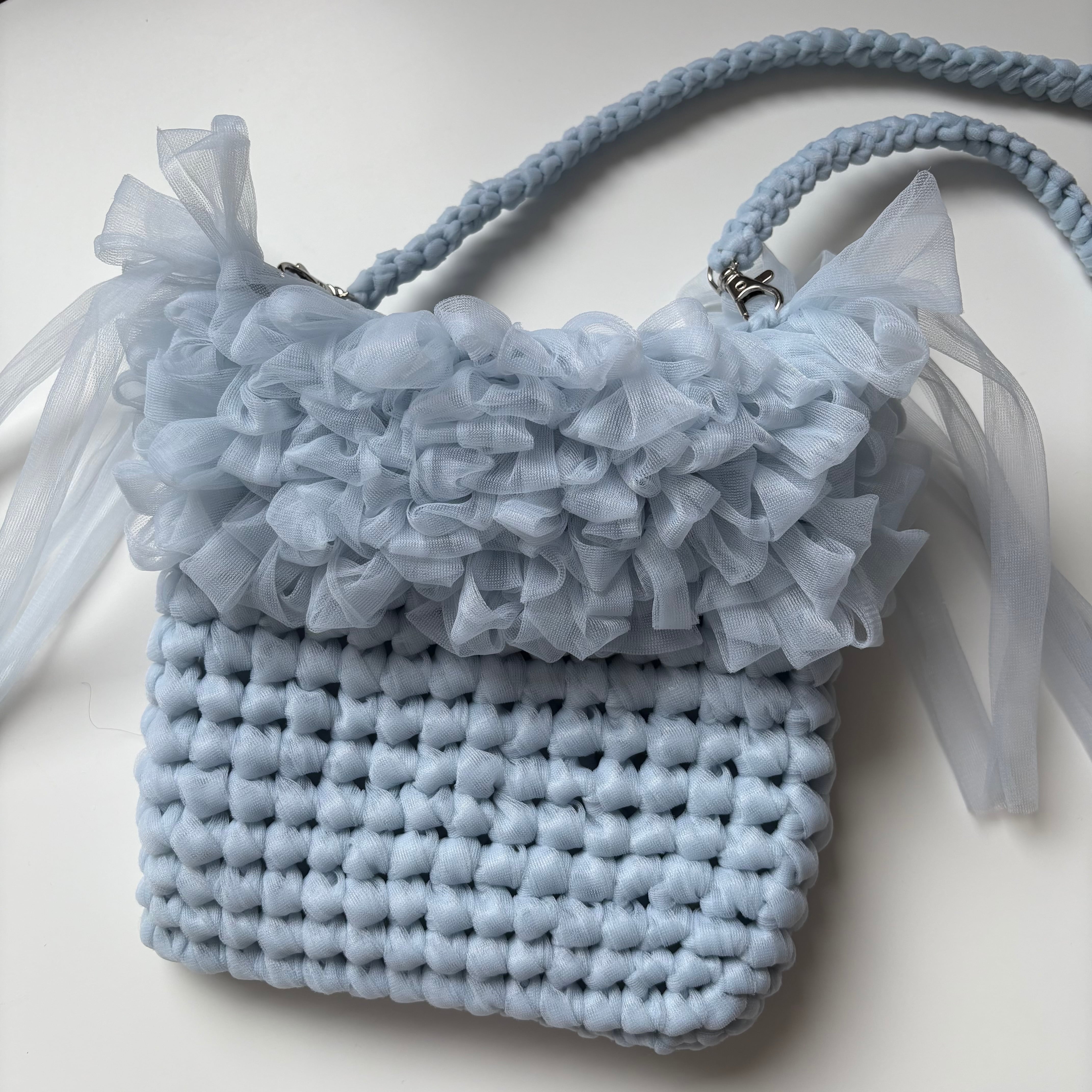 このバッグは、エレガントなチュール素材と可愛らしいリボンデザインで、シンプルなコーディネートのアクセントにもぴったりです! !