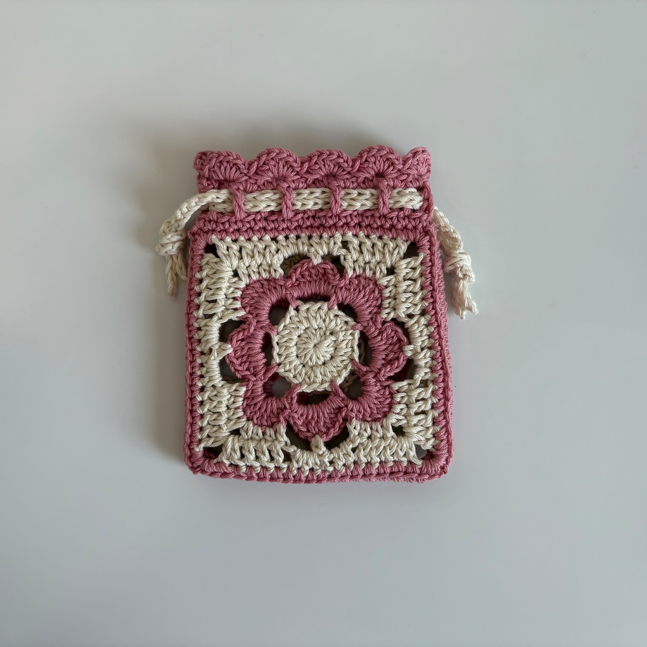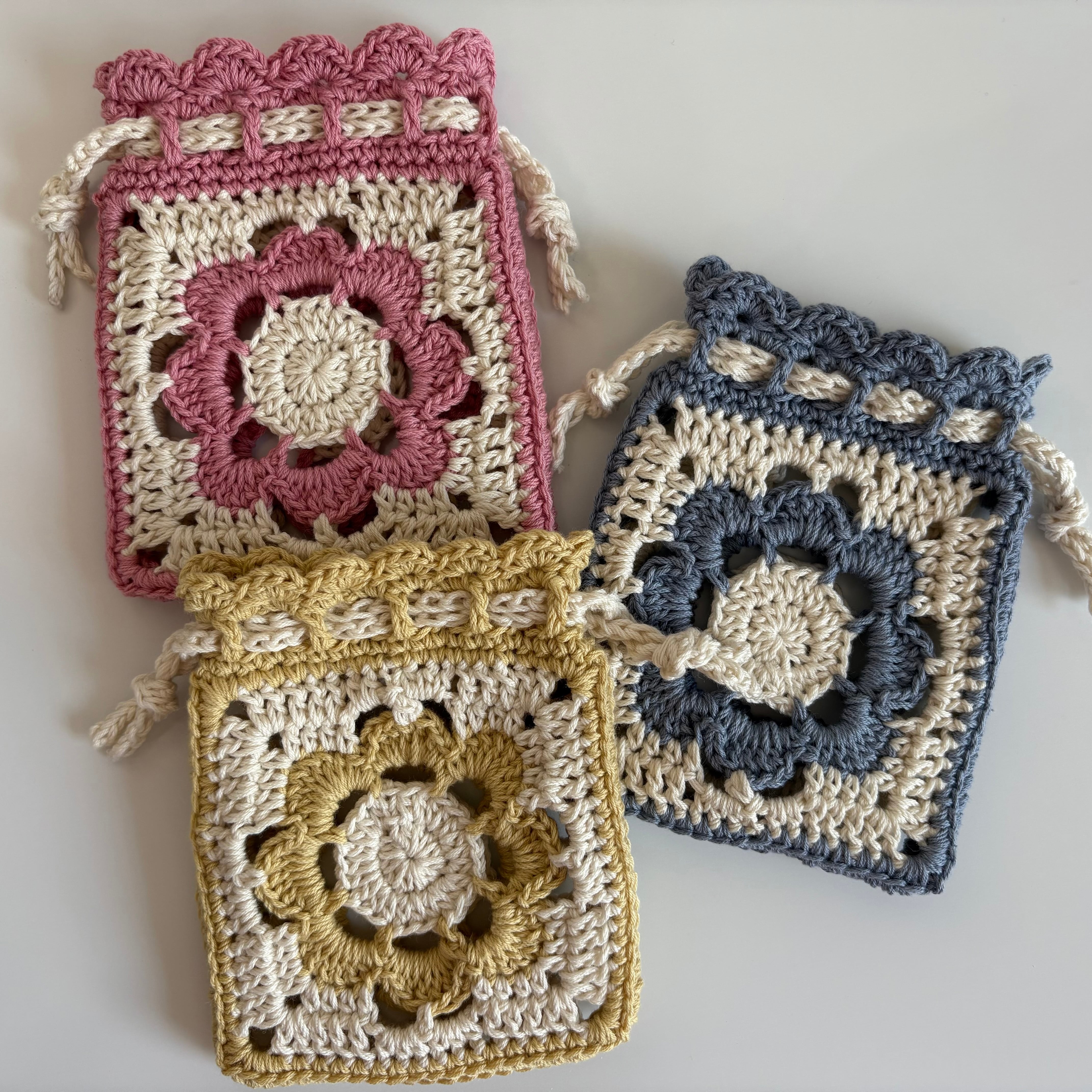 心惹かれる、かわいらしい「フラワーグラニースクエアの巾着ポーチ」が新登場です!