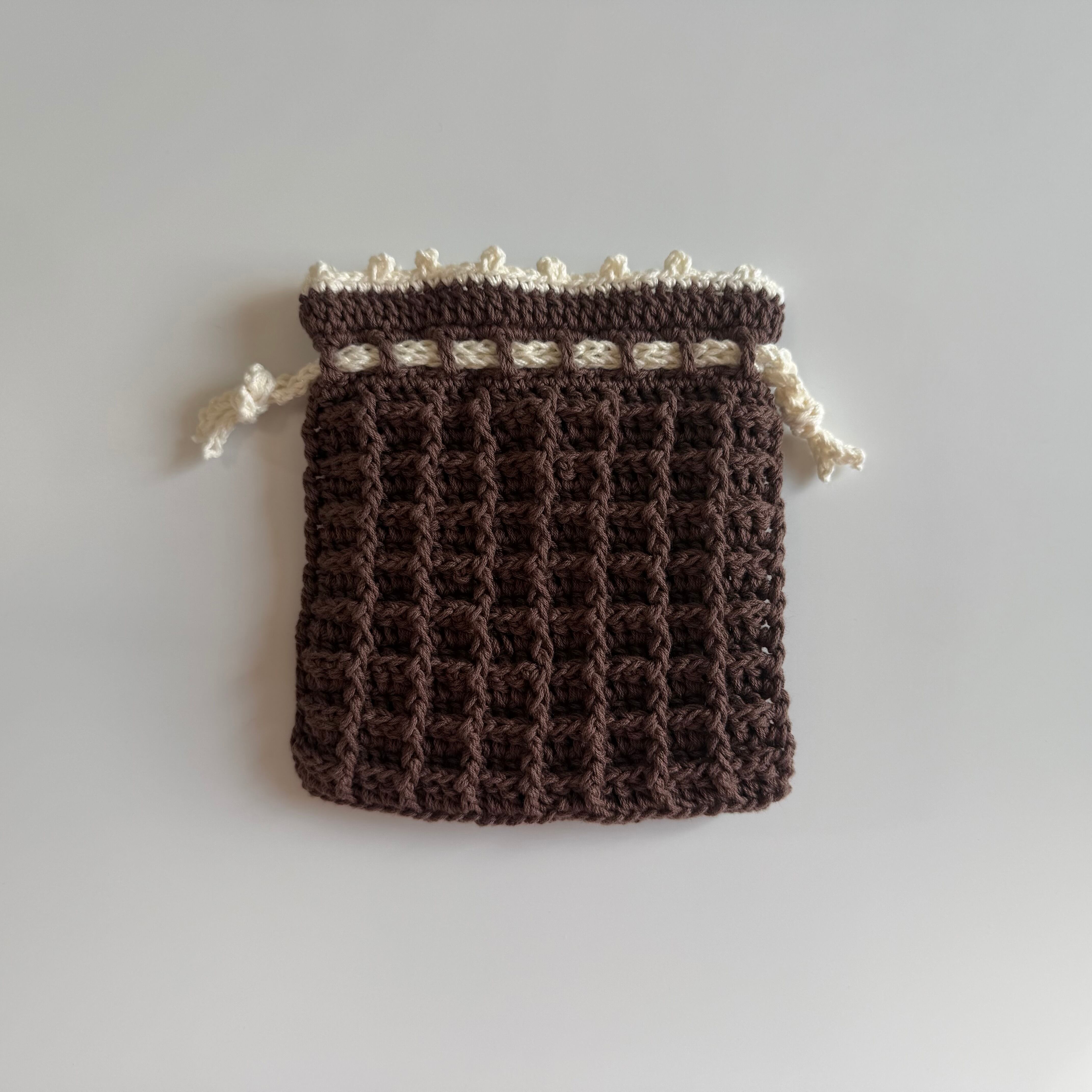 心躍る、可愛らしい「ワッフル編みの巾着ポーチ」が新登場です!