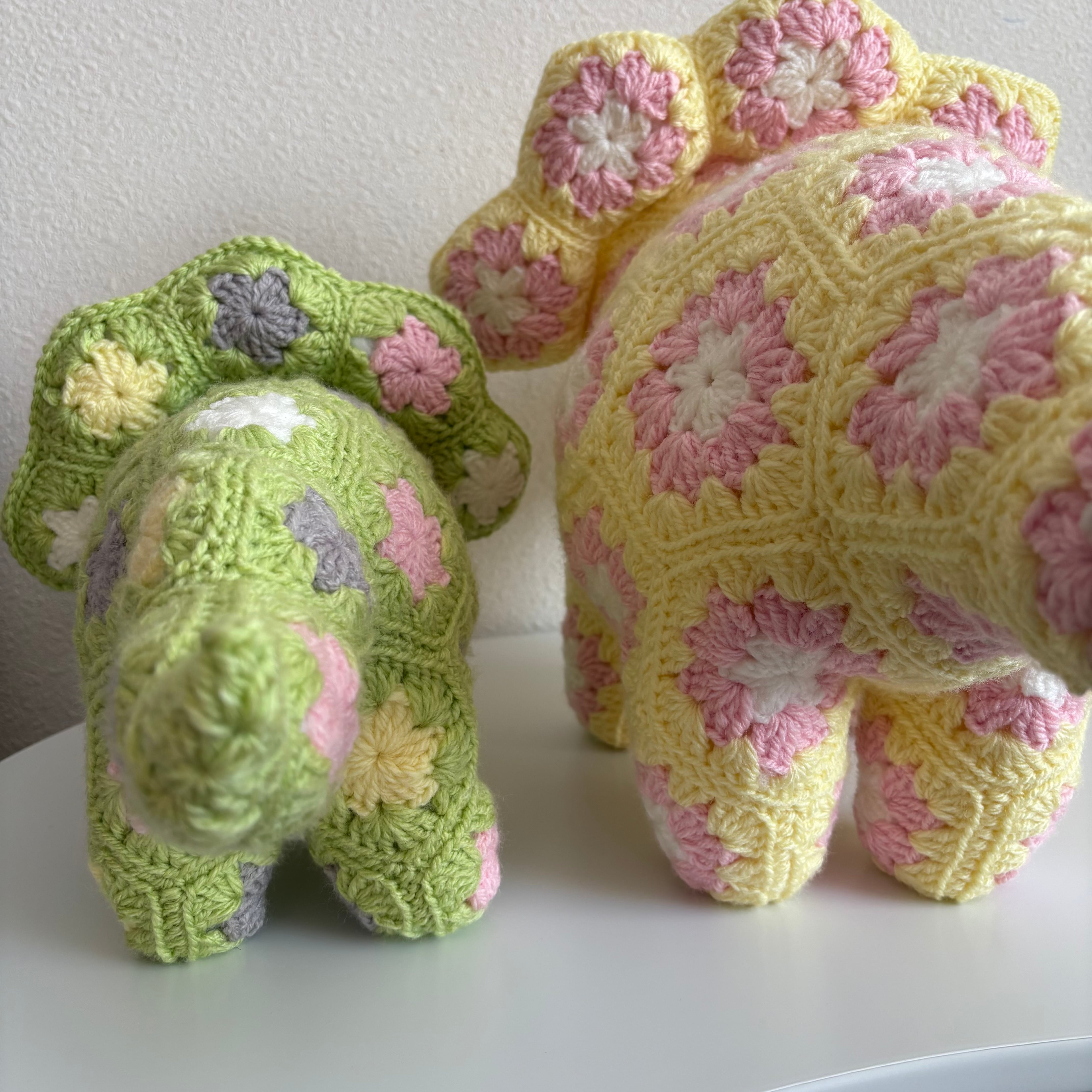心温まる、可愛らしいトリケラトプスモチーフのあみぐるみです。